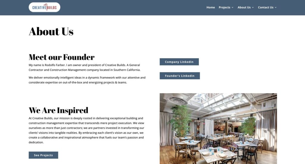 Strong construction websites are visually engaging, professionally designed, and strategically structured to guide visitors toward taking action. Most effective sites use high-quality project photography, interactive portfolios, team profiles, and clearly defined service offerings.