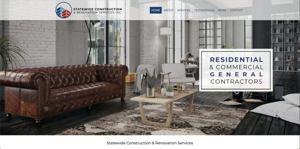 Statewide’s website presents a clean, professional layout with clearly labeled service areas. Navigation is smooth, and each service category, from commercial contracting to project management, is given its own spotlight.