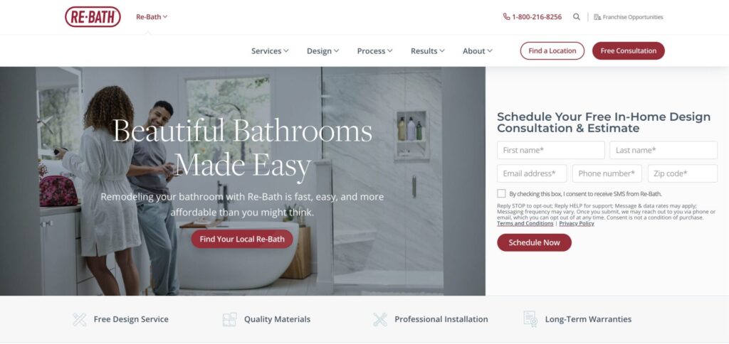 Over the years, the company has transformed over 1 million bathrooms, proving its extensive experience and expertise in bathroom remodeling. Re-Bath’s focus on providing high-quality services is reflected in its excellent customer ratings, and the company offers free consultations through its various franchises.